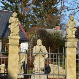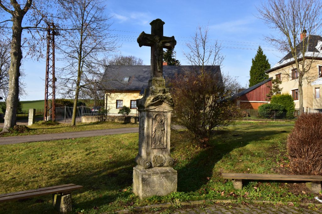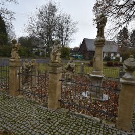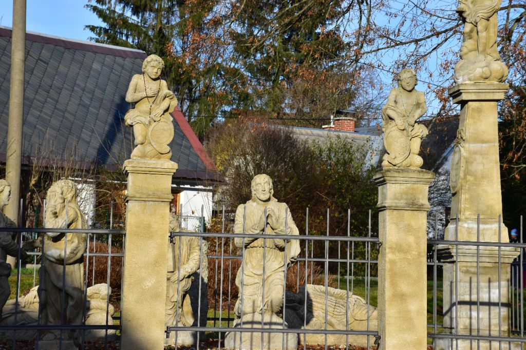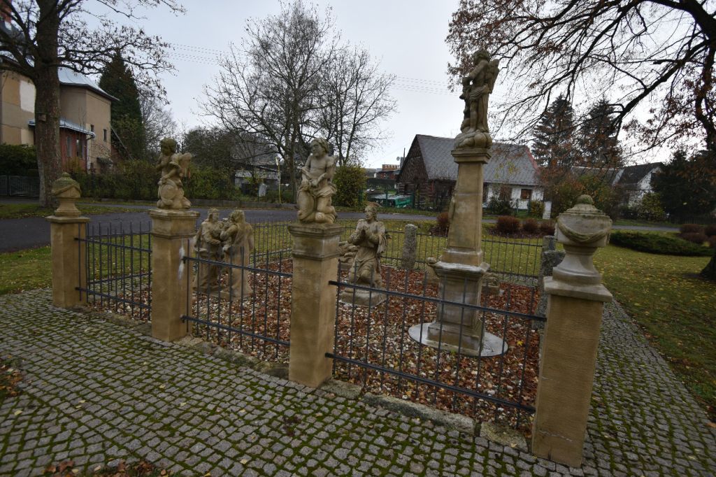 Skulpturengruppe Garten Gethsemane von 2014 befindet sich neben der Kirche. Das Original aus dem Jahr 1829 (Der Autor war wahrscheinlich der Steinmetz Ignác Martinec aus dem nahe gelegenen Sestroňovice, der sich von einer ähnlichen Skulptur unter dem Kreuzberg in Jiřetín pod Jedlovou inspirieren ließ. Beide Werke sind somit maßgeblich von der Waltersdorfer Produktion - Sandsteinbrüche und das Produktionsgebiet des Zittauer Gebirges - beeinflusst und tragen somit einen wichtigen Stempel des gemeinsamen kulturellen Erbes der Euroregion.